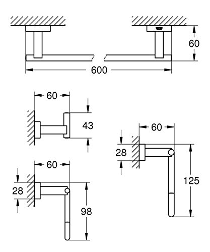 - Feature : GROHE StarLight® / Includes Robe Hook (40 511 001); Toilet Paper Holder (40 507 001); 24" Towel Rail (40 509 001); 8" Towel Ring (40 510 001)