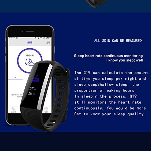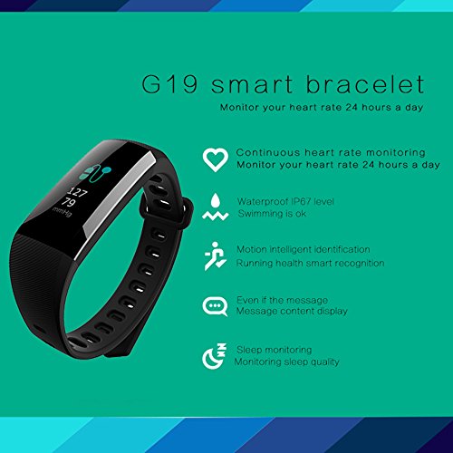 -. Title : Fitness Trackers G19 Color Screen Smart Fitness Bracelet with Bluetooth Call Remind Remote Activity Tracker IP67 Waterproof Calorie Counter Wireless Pedometer Sleep Monitor for Android iOS Phone