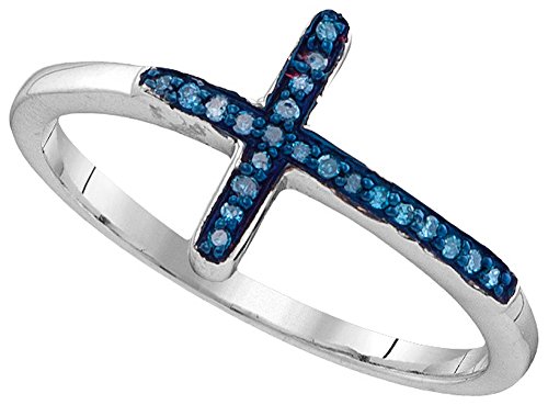 -. Title : Sterling Silver Womens Round Blue Colored Diamond Christian Cross Cluster Ring 1/20 Cttw = 0.05 (I2-I3 clarity; Blue color)