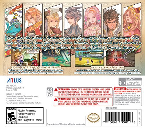 -. Feature : Illustrator Tomomi Kobayashi, renowned composer Masashi Hamauzu, writer Masato Kato, game designer Kyoji Koizumi, and Masa taka Matsuura all come together to create this brand new experience. / Each character in The Legend of Legacy has their own motivation for exploring Avalon, and their individual conclusion at the story's resolution. Play through as each character to see them all! / Managing formations to instruct specific combat roles instead of fixed classes adds a different level of challenge for battle enthusiasts. / Based on user feedback following the Japanese release, several gameplay adjustments were made to enhance the gameplay.