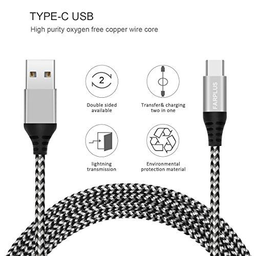 USB Type C Cable,3 Pack (3 6 10FT) Farplus USB C Cable Fast Charger Nylon Braided Cord for Samsung Galaxy S8 S8 Plus,LG G6 G5 V20,Google Nexus 5X/6P,Nintendo Switch,MacBook and More
