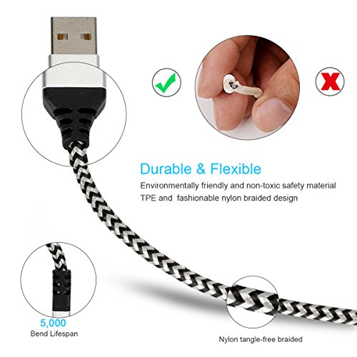 EXTREME DURABILITY WITH NYLON BRAIDED: The cable made of green and safe material TPE and fashionable nylon braided design with a tested 5000+ bend lifespan.The electroplating premium aluminum housing to Anti-oxidation