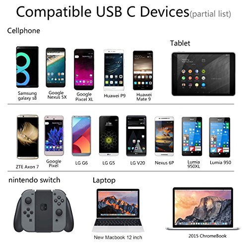 BROAD COMPATIBILITY: USB C cord fast charging and data syncing well with Samsung Galaxy Note8/S8/S8+,Google Pixel/Pixel XL,Nexus 5X/6P,LG G5/G6/V20,HTC 10/Bolt,Nintendo Switch,New MacBook,New Nokia N1 tablet,Moto z/Moto g5,OnePlus 3,OnePlus 3T,Huawei P9/Plus/Mate9,Asus Zen AiO,HP Pavilion X2 and new device has USB-C Port