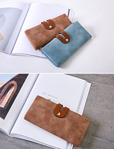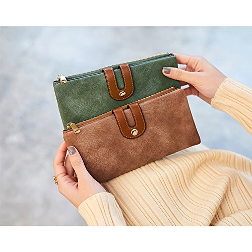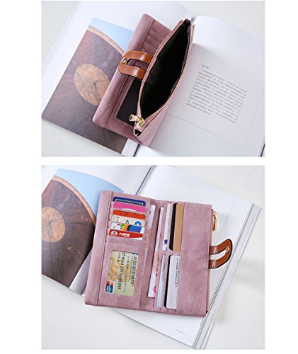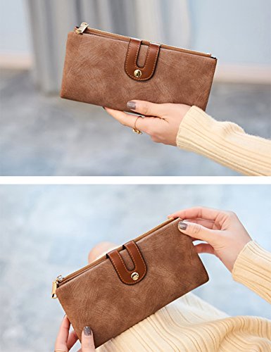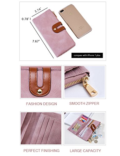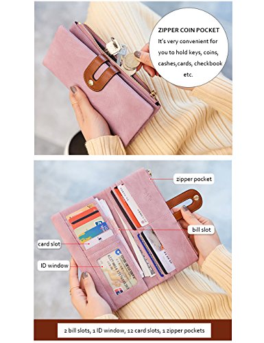 IFUNLE Womens RFID Blocking Long Clutch Slim Wallet Large Capacity Thin Bifold Wallet Card Holder Cash Key Passport Checkbook Organizer Zipper Buckle Travel Coin Purse Handbag