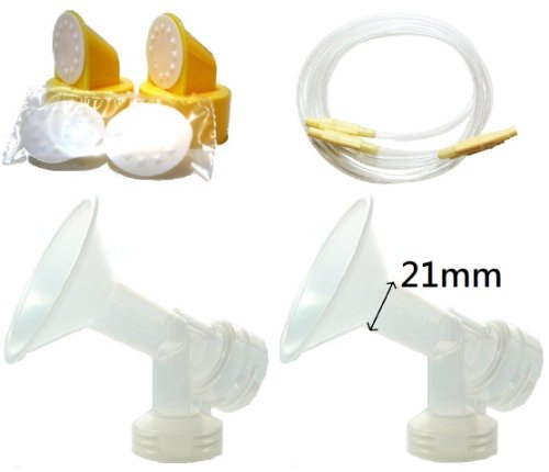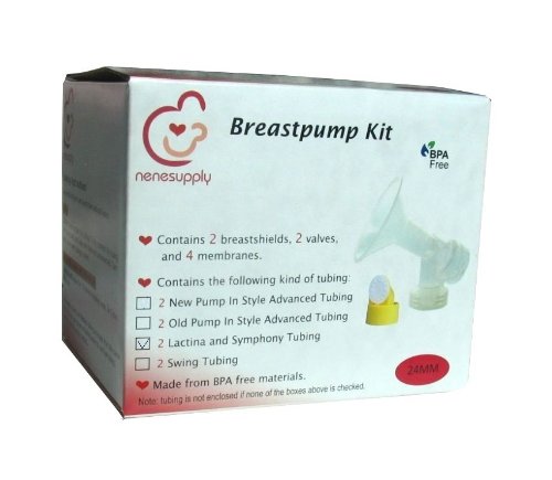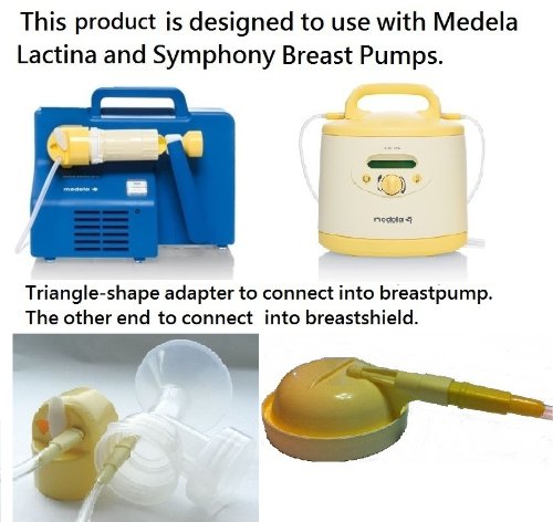 This product is designed to use with Medela Lactina and Symphony breastpumps. It contains 2 breastshields, 2 valves, 4 membranes, and 2 tubing. The tubing has yellow adapters on both ends. The breastshield is designed in one-piece, and thus, have better suction than 2-piece ones. In addition, we give you extra membranes so you can have replacement when existing ones break. NeneSupply breastshield can be connected with Medela storage bottles, and is 100% compatible with Medela valve and membrane. You may attach your own Medela valve onto NeneSupply breastshields, or you can also purchase spare NeneSupply duckbill valve on Amazon. For best protection and hygiene, all items are packaged in corrugated carton, sealed by manufacturer.Feature