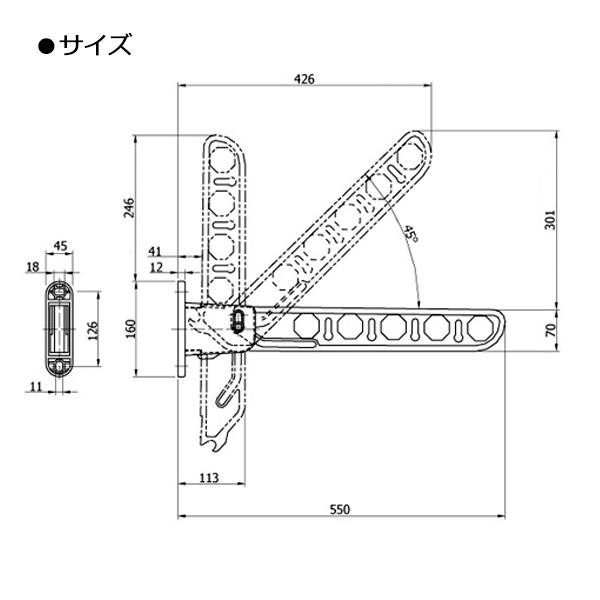 fk094igrjs収納、取り出しが簡単にできるランドリーホルダーです。45度と90度の2段階に角度調整も可能!!風にも耐えるハンガー掛け付き。 製造国:中国 素材・材質:アルミダイカスト 商品サイズ:全長550mm 仕様:耐荷重:100kg 付属品:取扱説明書※お届け地域により、別途運賃がかかる場合やお届けできない場合がございますので、お問い合わせ下さい。