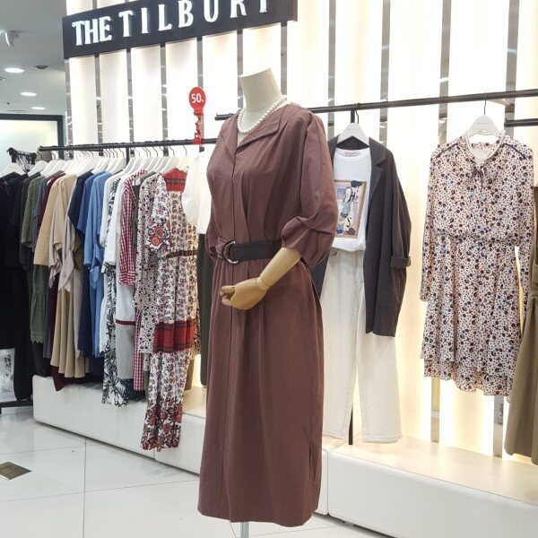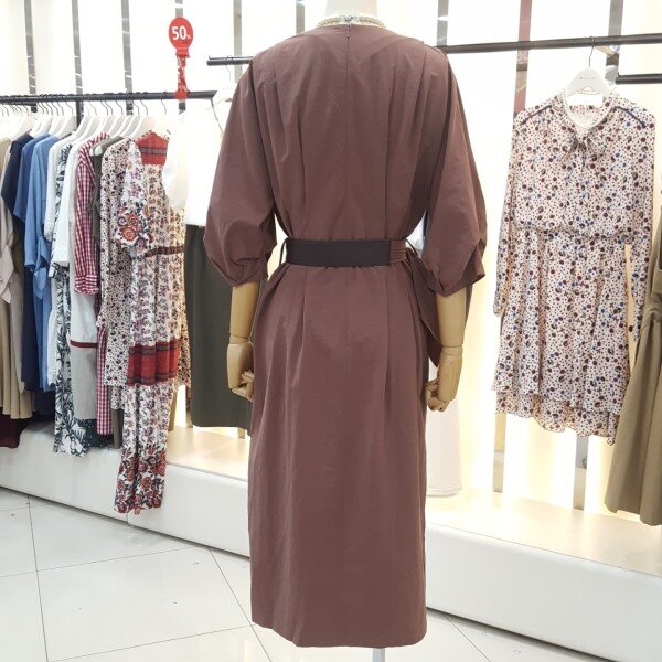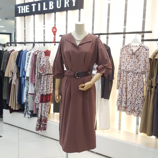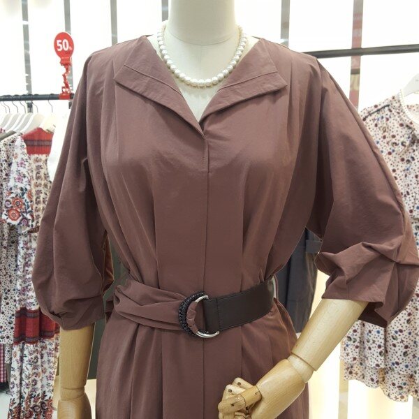 페미닌무드의 고급스러운 색감의 촉감 좋은 원피스입니다.퍼프소매가 팔뚝살을 가려주고 벨티드로 허리의 실루엣을 살려주는 카라브이넥라인의 여성스럽고 도시적인 세련된 원피스입니다.