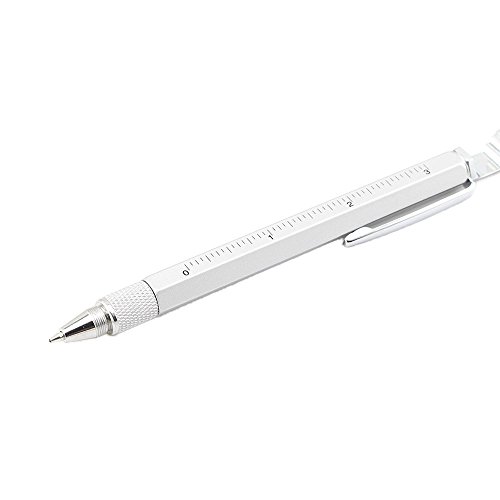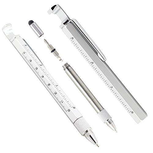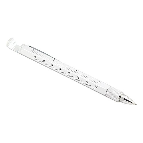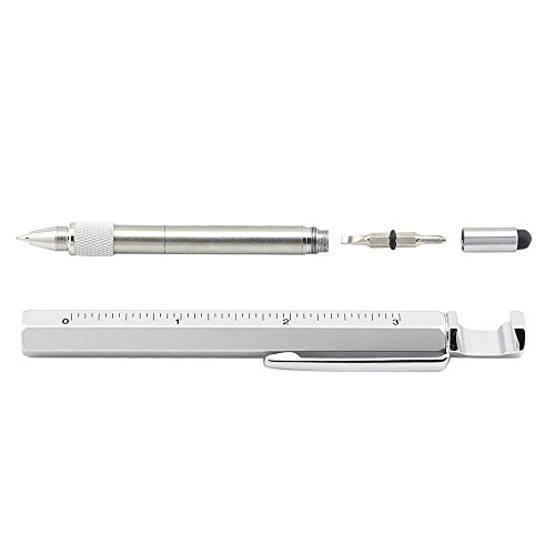 Pshine Multi-Tool 7 in 1 Pen with Ruler, Bottle Opener, Phone Stand, Ballpoint Pen, Stylus Fit for Mens Gift (Silver)