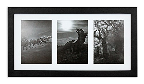 Golden State Art, 9x18 Black Photo Wood Collage Frame with Mat displays (3) 5"x7" pictures with REAL GLASS