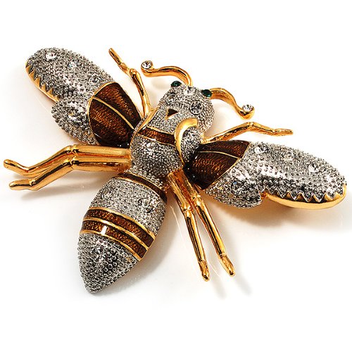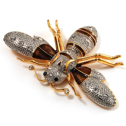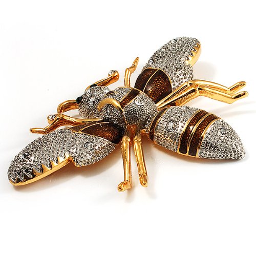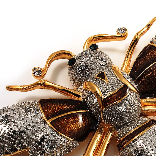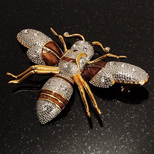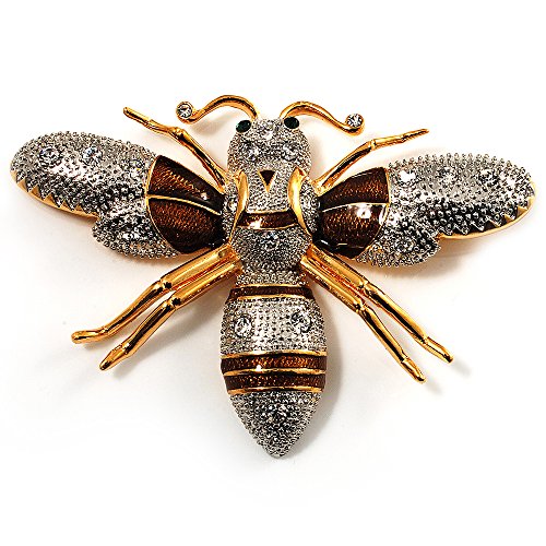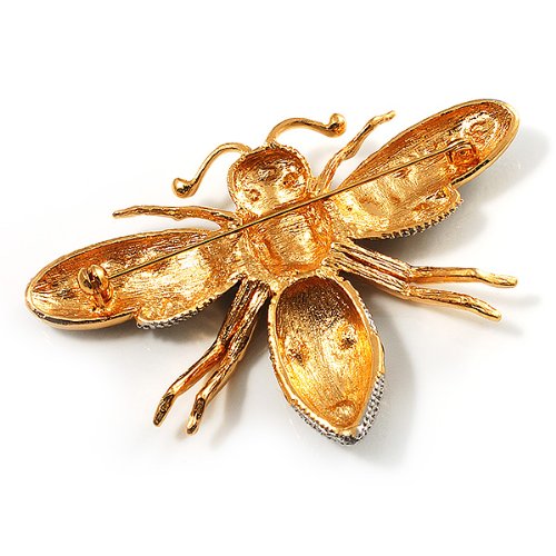 -. Title : Oversized Gold Diamante Bee Brooch
