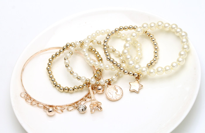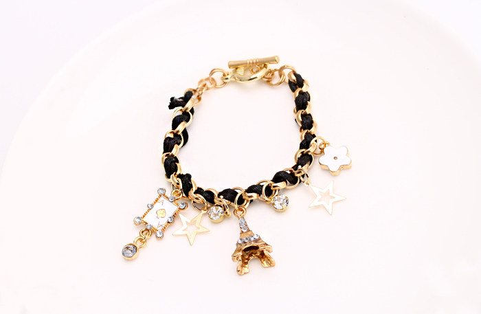 铁塔五角星多层手链(浅金)