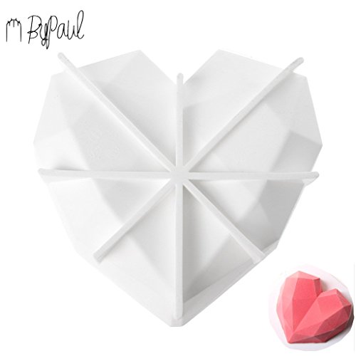 Diamond Heart Love Silicone Cake Mold 3rd Generation: FDA certified Silicone Oven Safe Mousse cake 3D Exclusive ByPaul secret recipe included nonstick 7 inch