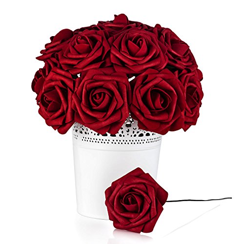 Roses Artificial Flowers Fake Flowers Wedding Decorations Set 50pcs Artificial Flora DIY Wedding Home Office Party Hotel Restaurant Patio Yard Decoration (Red Wine)