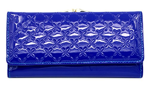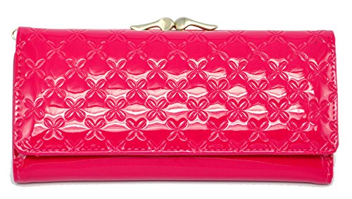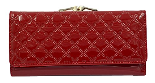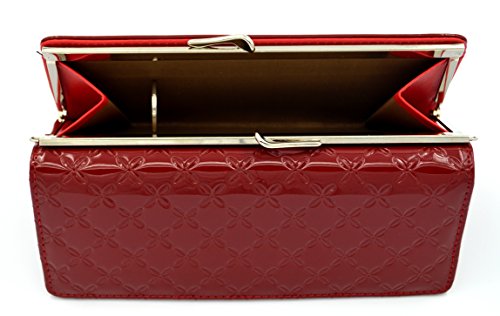 DANCL® Women Leather Wallet Trifold Hybrid Women's Passcase Wallet New Pattern Fashion Organizer Long Wallet Clutch Purse Handbag Card Case Holder (DW-red)