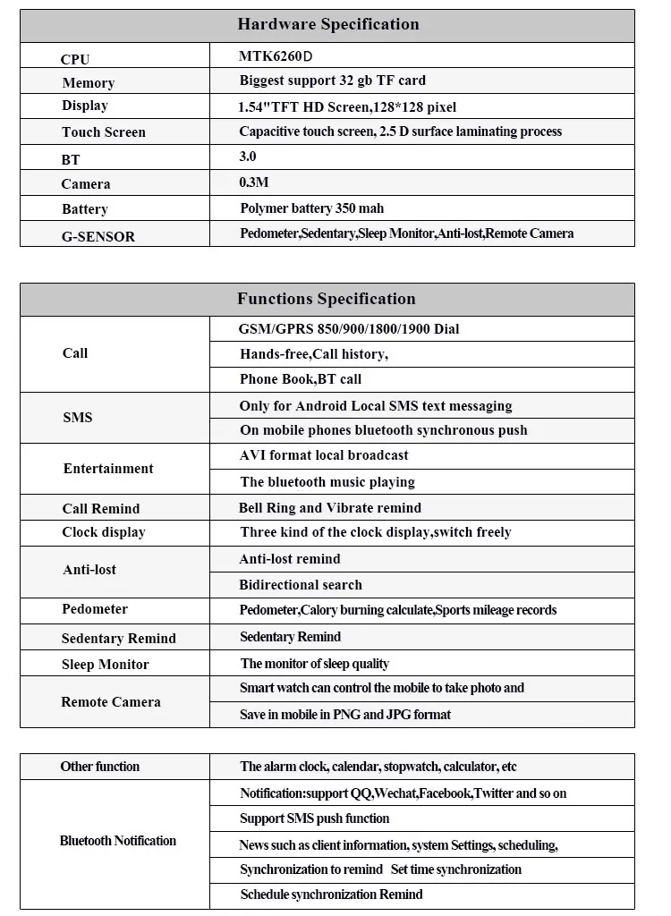 Function:Noctilucent,Passometer,World Time,Sleep Tracker,Heart Rate Tracker,Calculators,Permanent Calendar,24 hour instruction,Fitness Tracker,Message Reminder,Calendar,Dial Call,Push Message,Alarm Clock,Answer Call,Call Reminder
