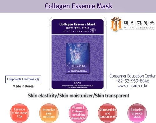 - Feature : MJCARE NEW Essence Facial Mask - Collagen Essence 15 Pcs / MJ CARE essence mask is specially formulated cosmetics to penetrate active ingredients into the skin / It will make your skin look younger, moisterized, elastic, bright and relieve you from stress / Power relaxation skin with Moisturing treatment / For ALL SKIN TYPES AND FOUR SEASON