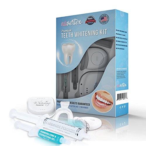 Nuvertex Aura Teeth Whitening Kit, LED Light, 35% Carbamide Peroxide, 10ml Gel Syringes, 3ml Remineralizing Gel, Tray and Case