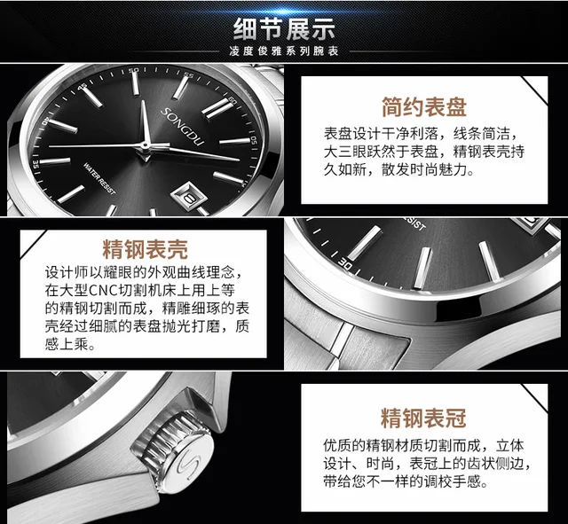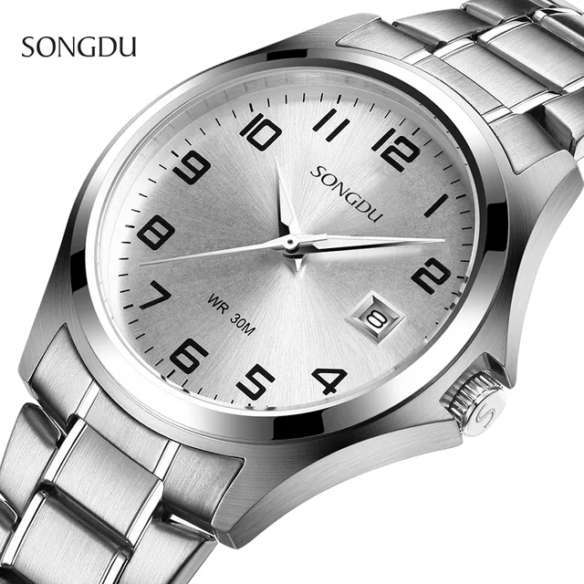 | [해외] 2017 SONGDU 패션 레저 모델 남자 시계 스틸 밴드 달력 방수 스포츠 간단한 남성 석영 시계 relogio masculino |