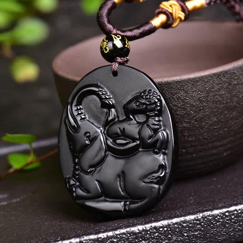 开光生肖属马人开运转运吉祥物 羚象镇宝黑曜石吊坠