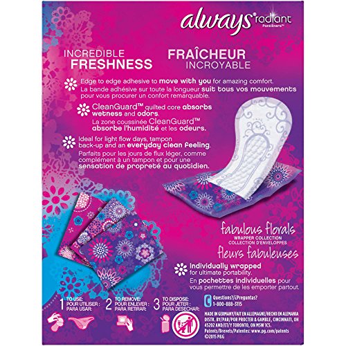 Always, Radiant Pantiliners, Regular, Unscented, 48 Count