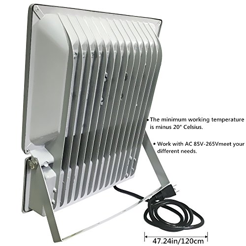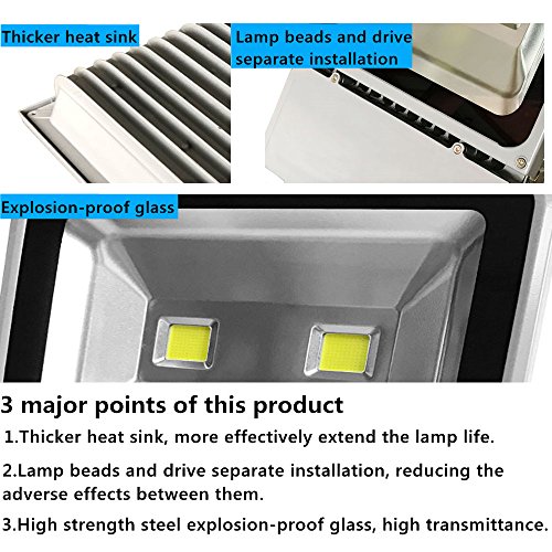 - BRIGHT ENOUGH: Hight quality commercial outdoor lighting. Effective output power up to 100W and the floodlight with 10150 lumen of daylight white. Equivalent to 600W halogen lamp. Meet your any demand to light. You can enjoy the light illuminate the range of 10 meters.