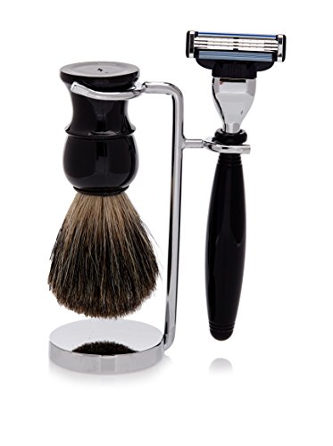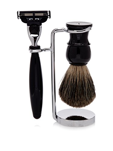 - Modern Golddachs Men's Wenge Wood 3-Piece Shaving Set features a Mach 3 razor and silver tip badger brush with stainless steel and wenge wood handles.
