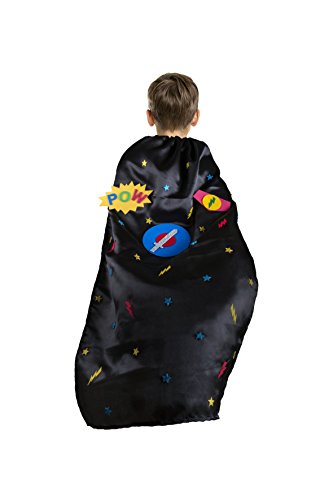 Wonder Cape: A dark black cape that you make using your own designed superhero signs, pow and boom and lots of lightning and glitter!
