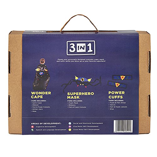 JackInTheBox is a theme-based educational experience box for children between the age of 5 & 10. Each activity box contains a fun and fresh mix of games/toys/DIY activities that work on one or more of the following 5 areas of development : cognitive, social, speech & language, fine motor, and gross motor. Boxes include supplies, instructions, fun facts, & more. Learning was never so much fun! WONDER CAPE: Items Included: Satin Cape, Ribbon, Foam Cutouts, Glitter, Glue SUPERHERO MASK: Items Included: Felt Mask, Ribbon, Felt and Foam Cutouts POWER CUFFS: Items Included: Felt Strips, Velcro, Felt and Foam cutouts, Glitter, GlueFeature