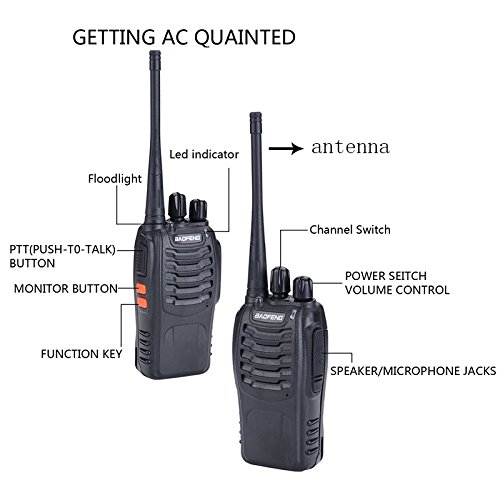 - Model: Baofeng BF-888s, Each radio has a earpiece and a rechargeable Li-ion battery. Built-in Led torch make things easier when in dark environment.