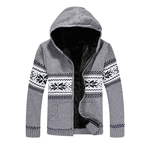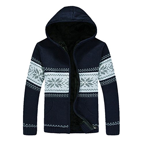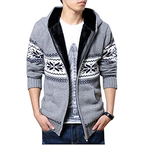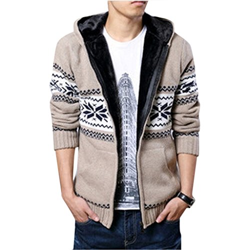 (Egelbel)/Men/Sweaters/DIRECT FROM USA/EGELBEL Men's Fall Winter Snowflake Pattern Thicken Knit Cardigan Hooded Sweater