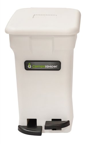 Studio : 1908 Brands Publisher : 1908 Brands Binding : Kitchen Product Description Recycling food waste in the kitchen no longer requires adopting a family of fruit flies, living with weird smells or taking multiple trips to the compost bin. The CompoKeeper’s quadruple-action odor control technology locks smells in and bugs out with proprietary bag-sealing clamps, pedal-powered lid, ventilated design, and activated carbon filter. Its generous six gallon capacity allows for more storage and fewer trips outside. The inner bag tote keeps the compostable bag from ripping or dripping. The CompoKeeper looks great as a freestanding unit or swap-out the lid with the handle (included) and keep it under the sink or in a slide-out trash drawer. Other uses: odor-free storage of dirty diapers, pet waste and other smelly trash (optional labels included). Your purchase includes 12 compostable bags, two activated carbon filters, and easy-to-assemble handle accessories. 0