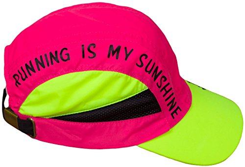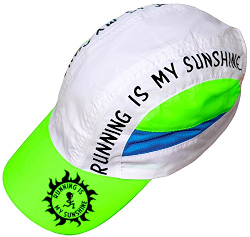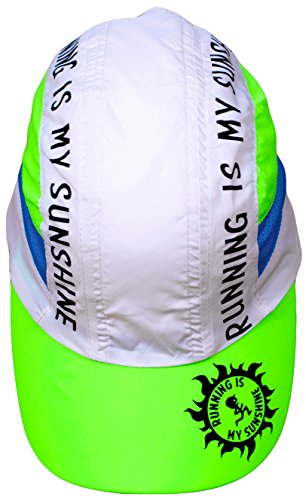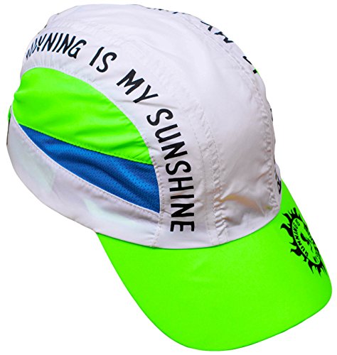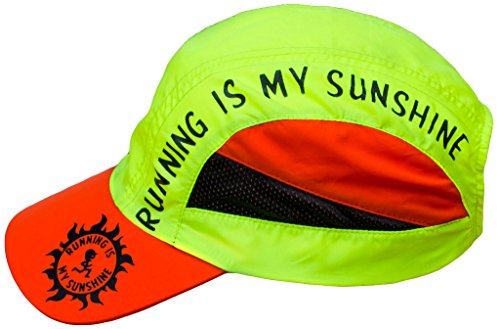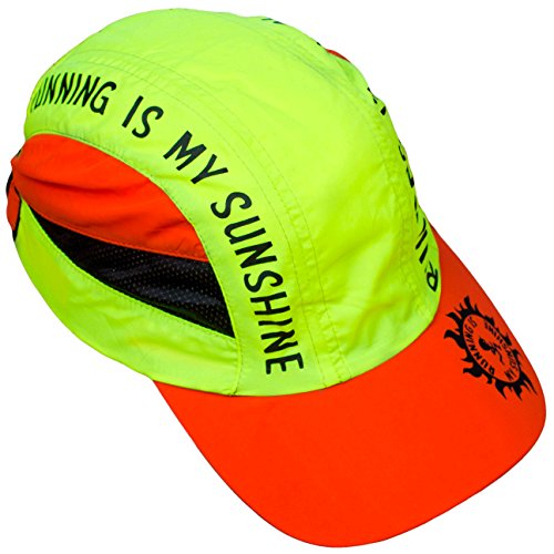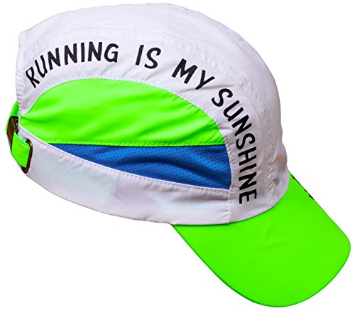 Studio : Miva Brands, Inc. Publisher : Miva Brands, Inc. Binding : Misc. Product Description Our most popular performance hat is used by endurance athletes, runners, triathletes, hikers, fun runs and more. With a blend of elegant design and technical innovation, Running is My Sunshine Race Hats provide a superior fit that makes it the most comfortable and best performing running hat you will ever wear. The cap is designed with mesh panels on the side to allow for maximum airflow and moisture transfer, the material dries 3 to 4 times faster than cotton. Perfect for everyday use and hot weather running, the Running IS My Sunshine Race Hat features a ultra lightweight design that keeps the sun off and the heat and moisture moving through. Weighing in at less than two ounces, the Running IS MY Sunshine fabric shell is made of breathable, moisture wicking fabric. The terry headband prevents perspiration from dripping into your eyes and transfers moisture off the skin to evaporative cooling. The easy to care for hat is machine washable. The Running Is My Sunshine Outdoor Sports Cap has an adjustable rear buckle with ponytail opening. Key Features: Flat front panel High Visibility Colorful Designs Ultra Lightweight fabric shell - dries fast! Fabric terry headband - keeps sweat out of your eyes! Weighs less than 2 ounces Adjustable rear buckle with ponytail portal Machine washable Ultimate Running Gear, High Performance Running Ball Cap with Ultra Lightweight, High-Tech, Sweat Resistant, Moisture Wicking, Keeps you dry, protects from sun, reduces glare, adjustable buckle, high fashion apparel, fitness training accessory. Specifically designed by a Lifelong Runner for those that love Running!Specifically designed by a Lifelong Runner for those that love Running! 0