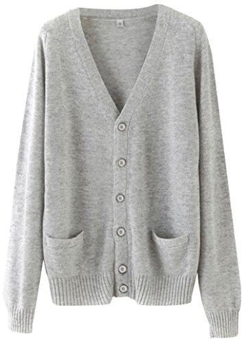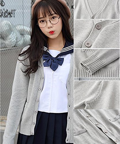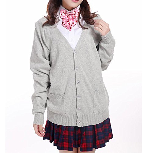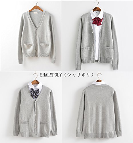 SHALYPOLY(《샤리포리》) SHALYPOLY(샤리포리) 스쿨 가디건 제복 무지 넉넉하게 니트 4계절용 V가디건 (남녀 겸용) (XL,그레이)