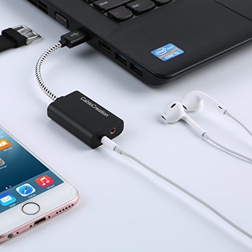 USB Audio Adapter, CableCreation Hi-Fi External USB Stereo Sound Adapter for Windows, Mac, Linux Extra, Plug and play No External drivers, 10CM/Black Color