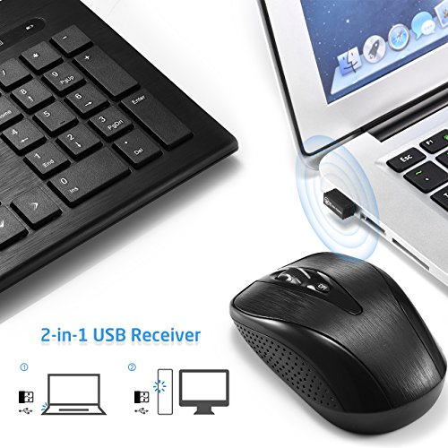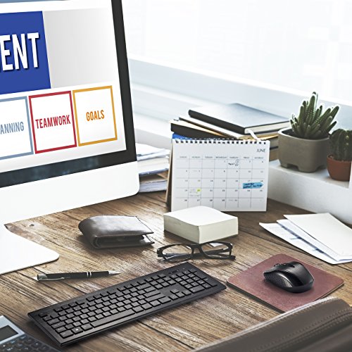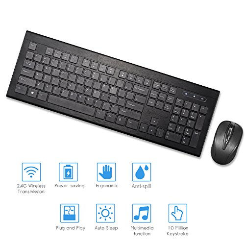 Sleek keyboard and mouse combo with low profile whisper-quiet keys delivering comfortable and smooth typing, compatible with most systems including Windows XP/7/8/10, VISTA and Mac.