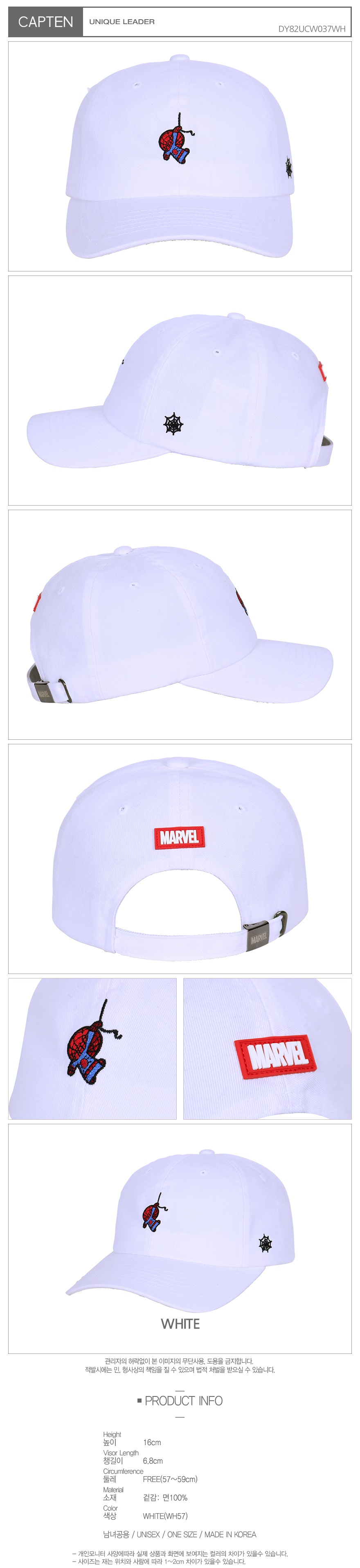 사이즈높이: 16cm, 챙길이: 6.8cm, 둘레: Free(57~59cm)