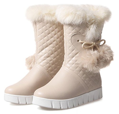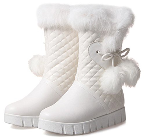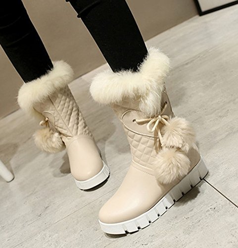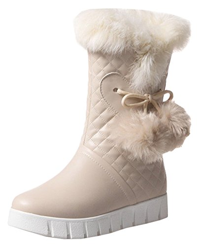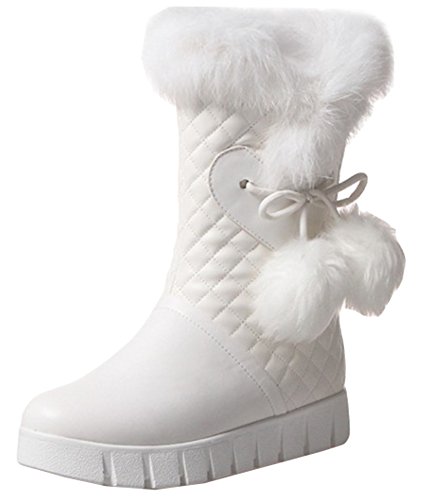 Binding : Apparel Product Description Cold weather is on the way. Do you need a pair of fashionable boots both of warm and trendy element? You could pock this one. This pair of shoes is for women, girls, juniors and young ladies. You will look stylish and casual when wearing them. The heels measure 1.2 inches. You will feel comfy in their low flats heels. This pair of shoes features solid upper and You will look cute in their round toe design. The decoration of fluffy fur will make you unique. The sole is made of good rubber. You will feel comfortable in their soft bottom. They are of high quality and durable. Come on and take them away! 0