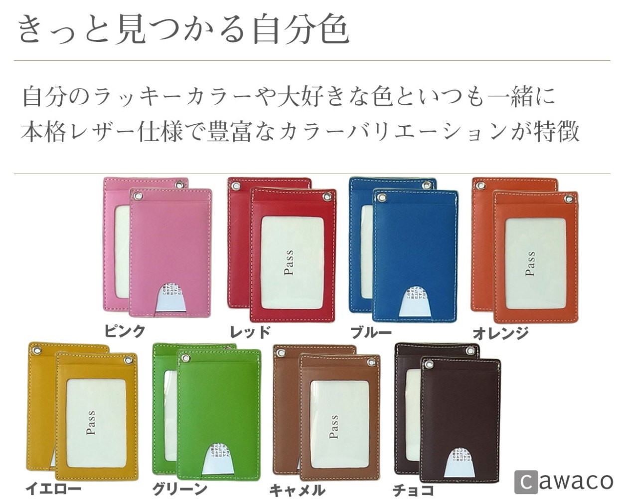 | 商品説明 | 本革を使っていながら、カラフルな8色展開(ブルー キャメル チョコ グリーン オレンジ ピンク レッド イエロー) スリムボディに3枚のカードを収納できる、スグレモノ。 1年を通して様々なプレゼントシーンでご利用いただき、喜ばれています。 |