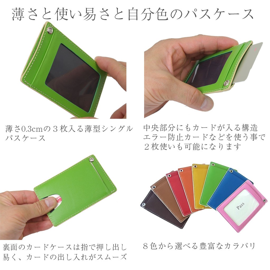 | 商品名 | 定期入れ 薄型 スリム パスケース 本革 3枚収納 メンズ レディース カラフル8色 |
