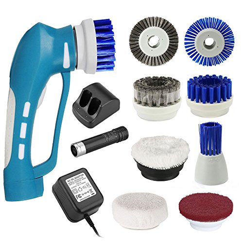 FINE DRAGON Cordless Multipurpose Power Scrubber with Powerful Rechargeable Battery and 8 Replacement Brush for Bathroom and Kitchen