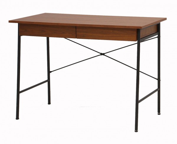 | 細いラインのブラックスチールの脚とウォールナットの天板がお部屋をスタイリッシュにコーディネートします。スチールのフレームは引出しを引き出した際に、本体が倒れないように斜めになっています。 |