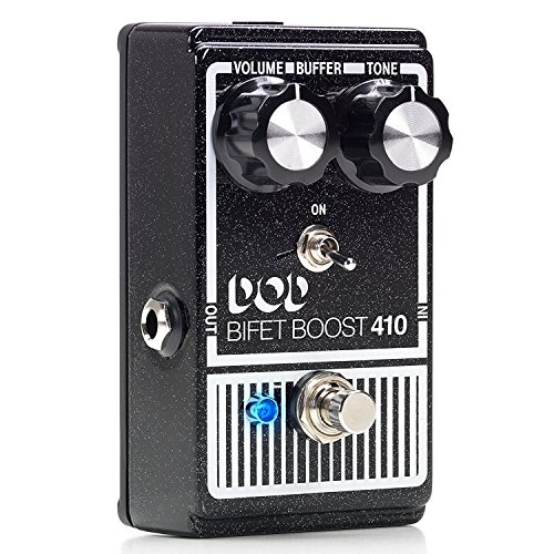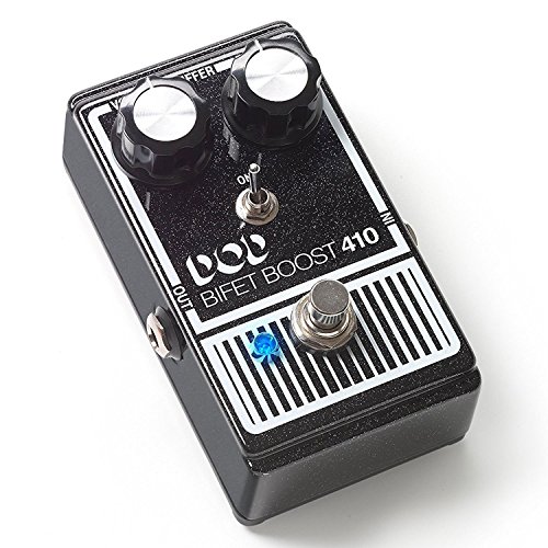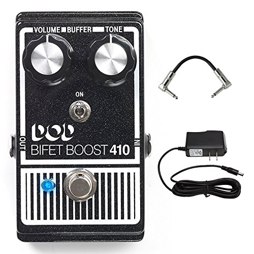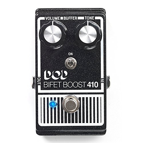 DOD BiFET Boost 410 Boost Pedal for Electric Guitar with Volume Tone Controls and Switchable True Bypass Buffered Operation with 2 Patch Cable and AC Power Adapter Sparkly or darkly, the DOD Bifet Boost 410 (2014) has the tone and volume to boost your solos into orbit. New for the DOD Bifet Boost 410 (2014), is a selectable Buffer On/Off toggle switch. This switch affects the bypass state of the undefined Bifet Boost and gives it the flexibility to be used anywhere in your FX chain. Use it first in the chain with the buffer off so that the buffer won't affect fuzz pedals, or put it last in the chain with the buffer on to counter the signal loss of today's larger packed pedalboards.The Bifet Boost can deliver a huge amount of output to hit the front of your amp and drive it into distortion. The DOD 410 is often described as a clean boost, but there is just a little hint of grit in there that works well with already cooking tube amps.The DOD Bifet Boost also works very well as an "always on", touch-sensitive and dynamic, tone sweetener in conjunction with guitar volume knob usage practiced by experienced players. The DOD Bifet Boost also has all of the added features of the new DOD pedals: True Bypass, LED, and modern PSU jack.Like its predecessor, the DOD Bifet Boost 410 (2014) offers independent Volume and Tone controls. Volume controls the amount of boost, and Tone allows for either bass or treble boost. boost pedal booster pedal boost pedal guitar boost guitar pedal guitar pedals boss guitar pedal pedal guitar upc 691991202872 asin B00MY98PUC True bypass allows your guitar tone to remain pristine even when the new DOD 410 (2014) is off. This is a big difference from the original, which would color your bypassed tone. The modern 9V DC power supply input also makes the pedal more pedalboard friendly. 0 |