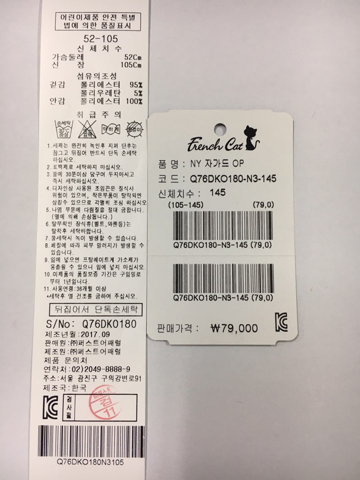 제품소재 : 겉감 폴리에스터95% 폴리우레탄5%안감 폴리에스터100%