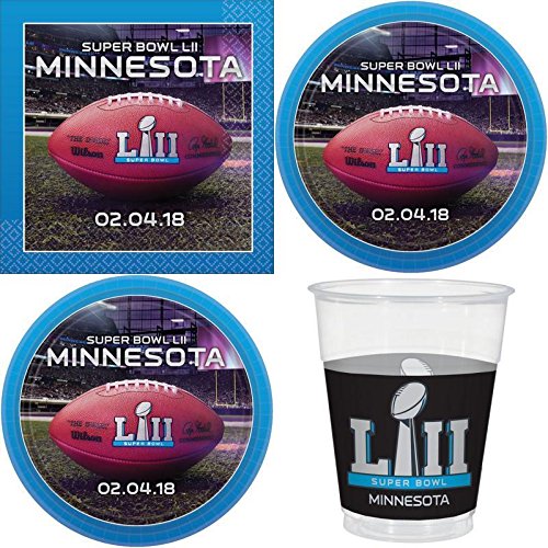 Super Bowl 52 LII 2018 NFL Party Supplies Pack for 24 Guests Including Dinner Plates, Appetizer/Dessert Plates, Napkins & Cups