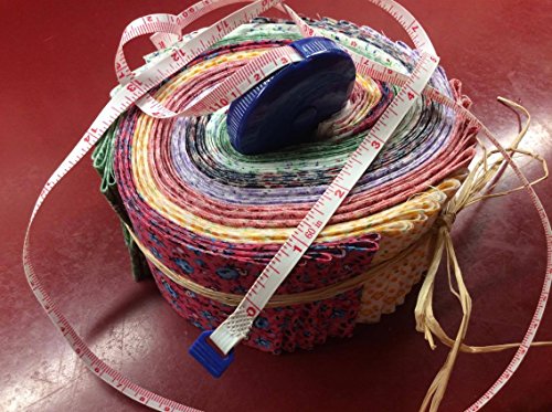 GRANDMA’S CALICO JELLY ROLL FOR QUILTING, 42 2.5” STRIPS, AND BONUS RETRACTABLE TAPE MEASURE