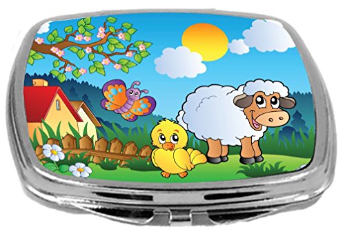 Rikki Knight Compact Mirror, Meadow with Happy Spring Animals, 3 Ounce