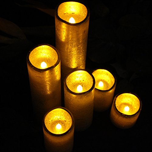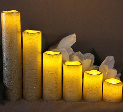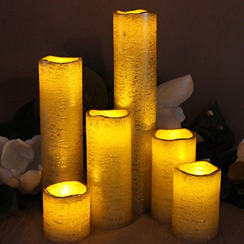 Studio : LED Lytes Publisher : LED Lytes Product Description LED Lytes TIMER FLAMELESS CANDLES, SLIM Set of 6, 2" WIDE and 2"- 9" TALL, Rustic Gold coated Wax and Flickering Amber Yellow Flame for Weddings and Parties and gifts These Top Quality unscented, flickering Flameless Candles by LED Lytes are made of real wax but still give a natural appearance while assuring the safety you desire!! Best fake electric faux battery powered pillar candle. LED LytesTM is based and operated in the USA!! We do not wholesale our products and we offer a TWO year Guarantee if Purchased from LED Lytes, LLC 0