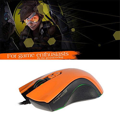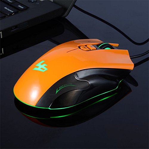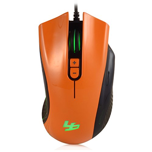 Wired Gaming Mouse, LESHP 4000 DPI USB Wired Optical Game Mice W/ 5 Buttons, 4 Color LED Lights, 5D Scrolling Wheel for Laptop Computer/PC Gamer, Orange