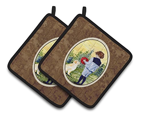 Caroline's Treasures Little Boy with His Golden Retriever Pair of Pot Holders SS8530PTHD, 7.5HX7.5W, Multicolor