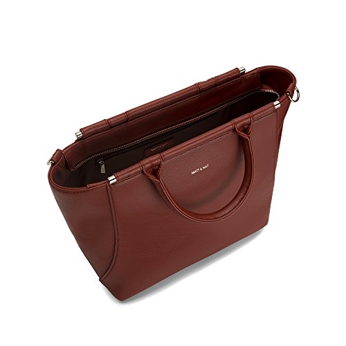 Product Description Satchel with adjustable and removable crossbody strap. Top zipper closure. Bar metal detailing running along the top part of bag, bellow handle. Interior: zipper pocket, smartphone pocket, logo embossed Dwell tag. 100% recycled nylon lining. Can fit a 13" laptop. Some ideas sneak up on you as if they were always meant to be. The idea behind MAT(T)ERIAL and NATURE originally came to life in 1995, in beautiful Montreal. We're passionate and in awe of the world that surrounds us. Being inspired by MAT(T)erial and NATure means exploring the synergy between the two, the reflection of one on the other. At Matt Nat, we live by a simple motto, "Live beautifully". Living beautifully means appreciating the humanity, creativity and positivity found in all of us. Our values include social responsibility, excellence, inclusiveness, integrity, learning, authenticity and, of course, love. We are inspired by the textures and hues of nature and, to better protect it, we aim to constantly better our ways. From the start, being committed to not using leather or any other animal-based materials in our designs felt natural to us. Each season, we continue to explore new innovative ways to remain sustainable and eco-friendly. Over the years, we've been experimenting with different recycled materials such as recycled nylons, cardboard, rubber and cork. Since 2007, we've been committed to using linings only made out of 100% recycled plastic bottles. We have also recently introduced recycled bicycle tires to our collections. 0